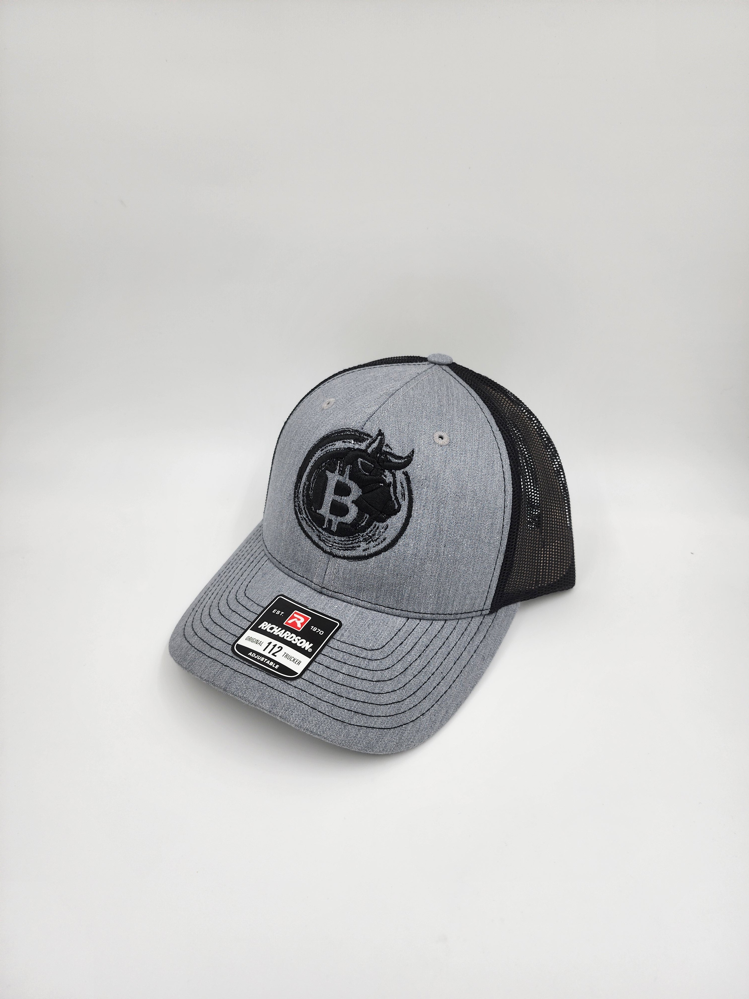 Bull Bitcoin Emblem Trucker Hat – Gray & Black | Richardson 112