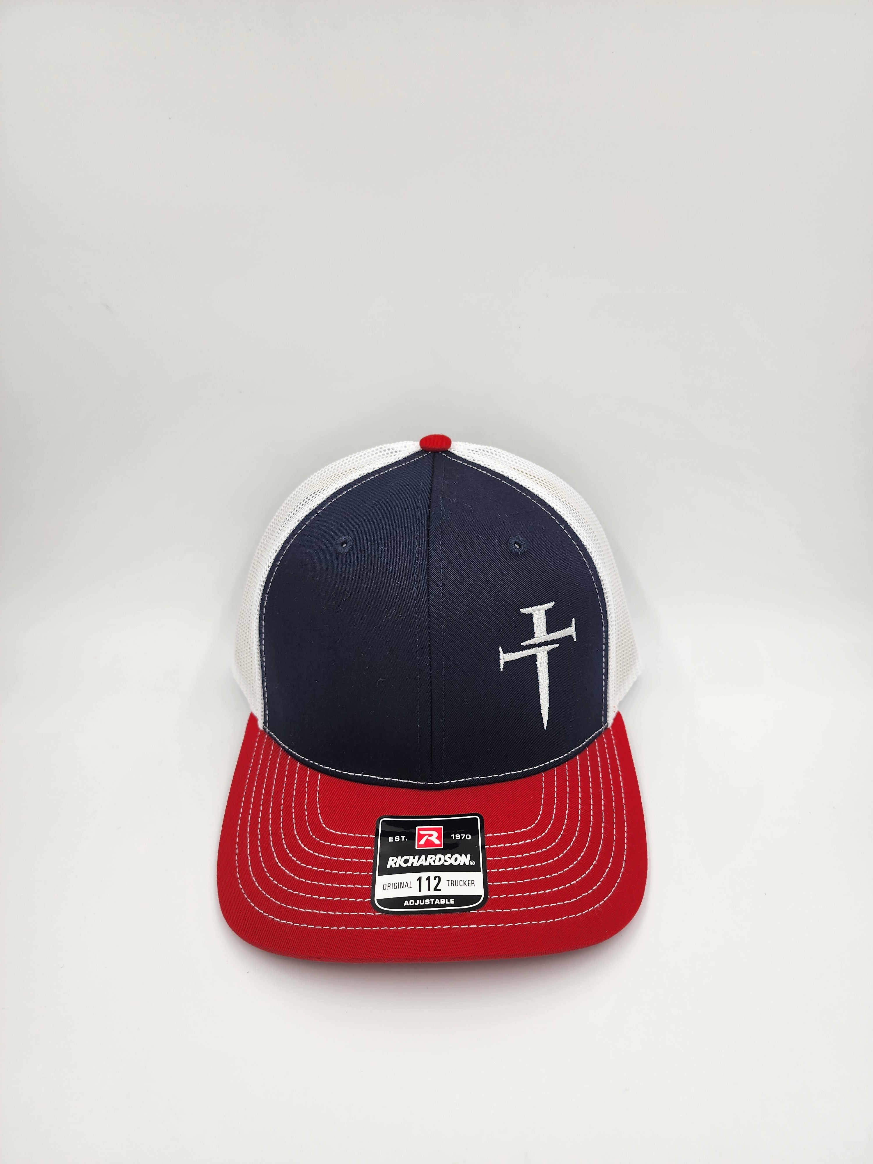 Faith & Steel Trucker Hat – Navy, Red & White - Richardson 112